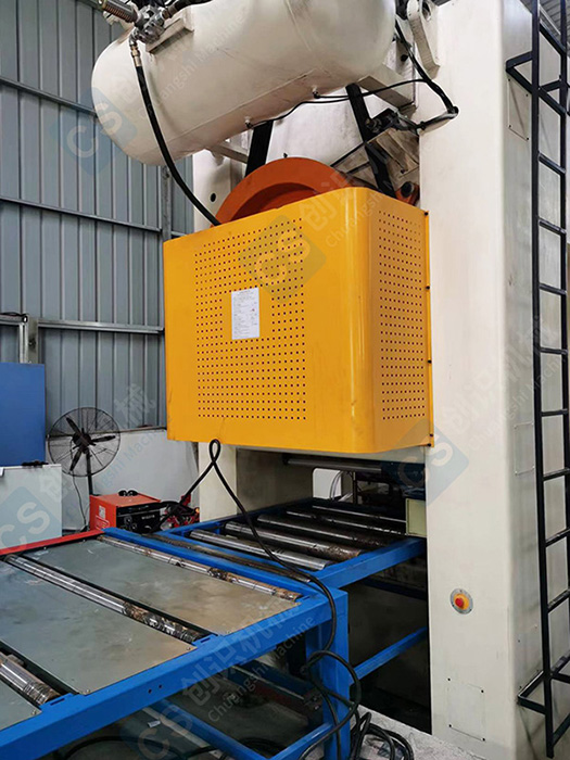 全套設(shè)備由開卷機(jī)、ML-900整平機(jī)、伺服送料裝置、JF21-200B沖床、沖模、輸送臺、成型主機(jī)、定尺切斷、收料臺和電器控制等部件組成。